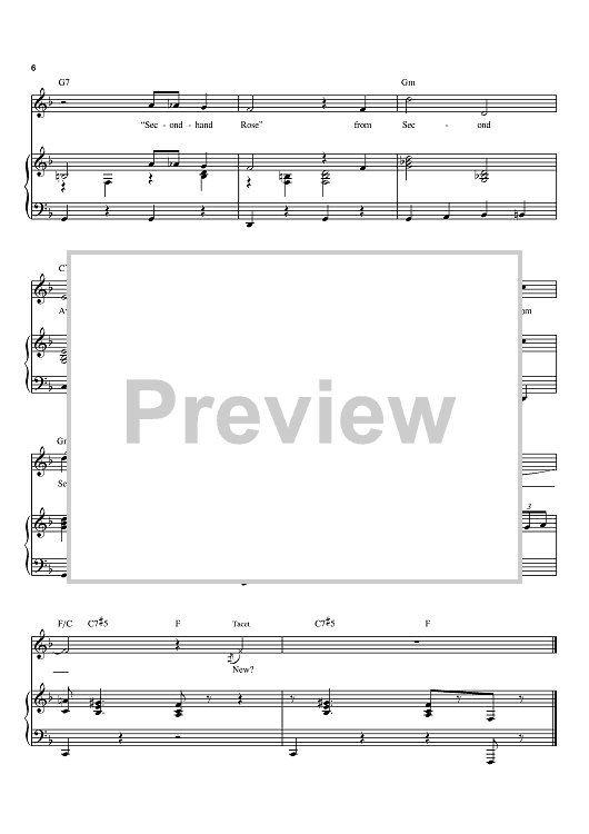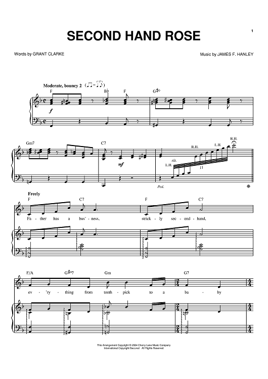 Digital Sheet Music for Second Hand Rose by James F. Hanley, Grant Clarke, Barbra Streisand scored for Piano/Vocal/Chords; id:373520