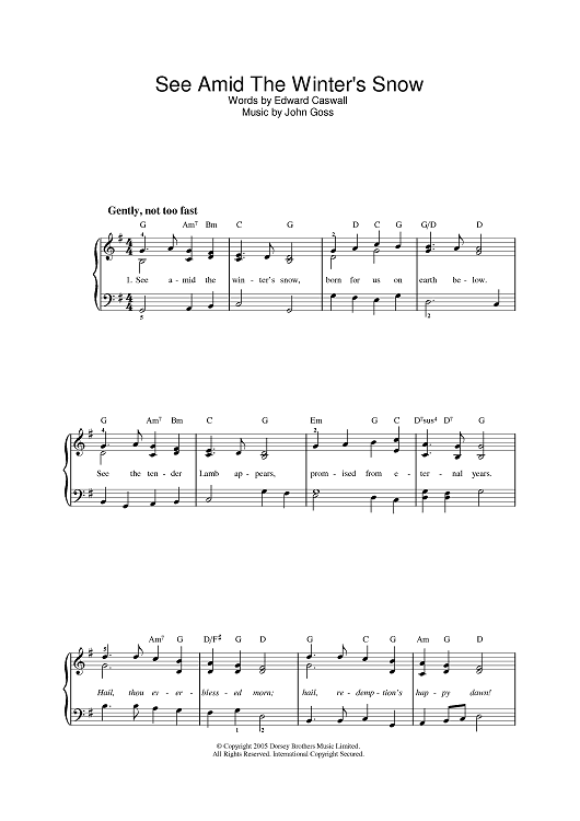 Digital Sheet Music for See Amid The Winter's Snow by John Goss, Edward Caswall scored for Piano/Vocal/Chords; id:386113