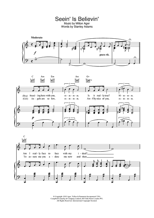 Digital Sheet Music for Seein' Is Believin' by Lew Stone scored for Piano/Vocal/Chords; id:375679