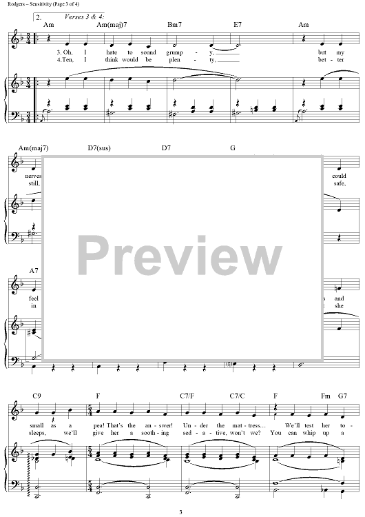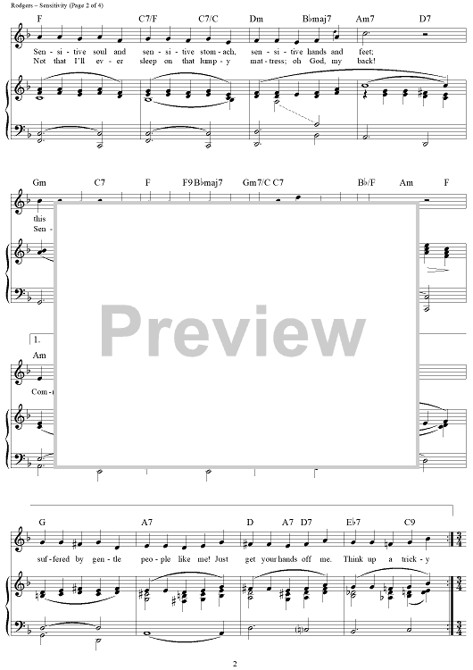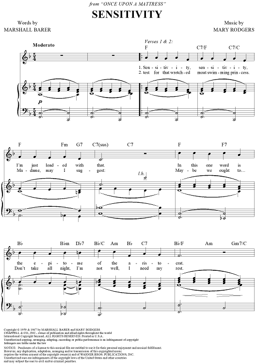 Digital Sheet Music for Sensitivity by Mary Rodgers, Marshall Barer scored for Piano/Vocal/Chords; id:314315