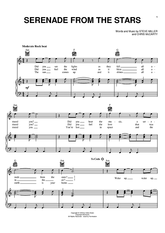 Digital Sheet Music for Serenade From The Stars by Steve Miller, Chris McCarty, Steve Miller Band scored for Piano/Vocal/Chords; id:386241