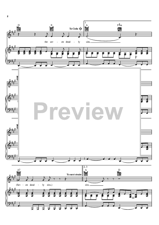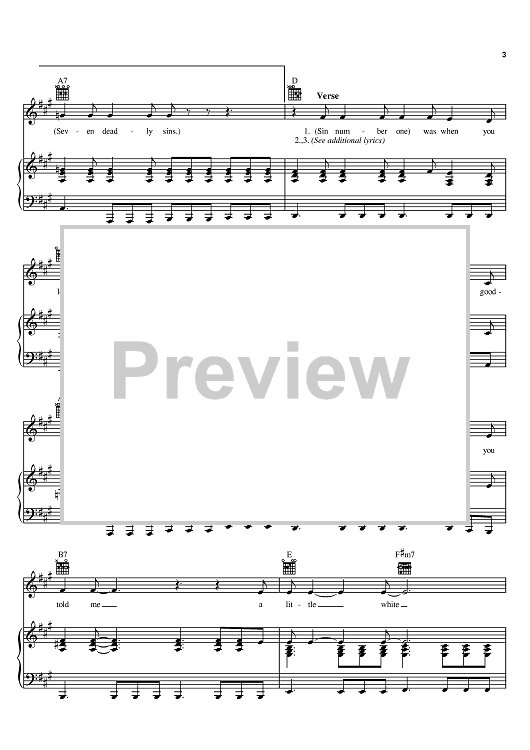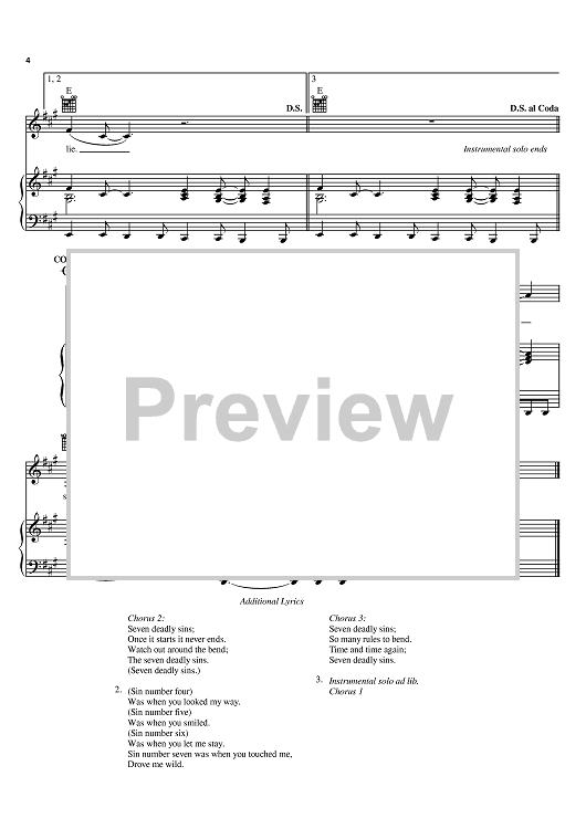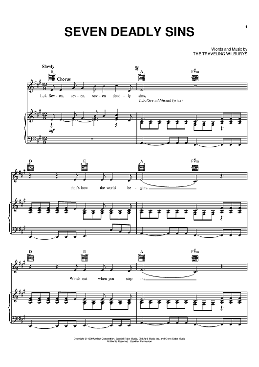 Digital Sheet Music for Seven Deadly Sins by Bob Dylan, George Harrison, Tom Petty, Jeff Lynne, The Traveling Wilburys scored for Piano/Vocal/Chords; id:402455