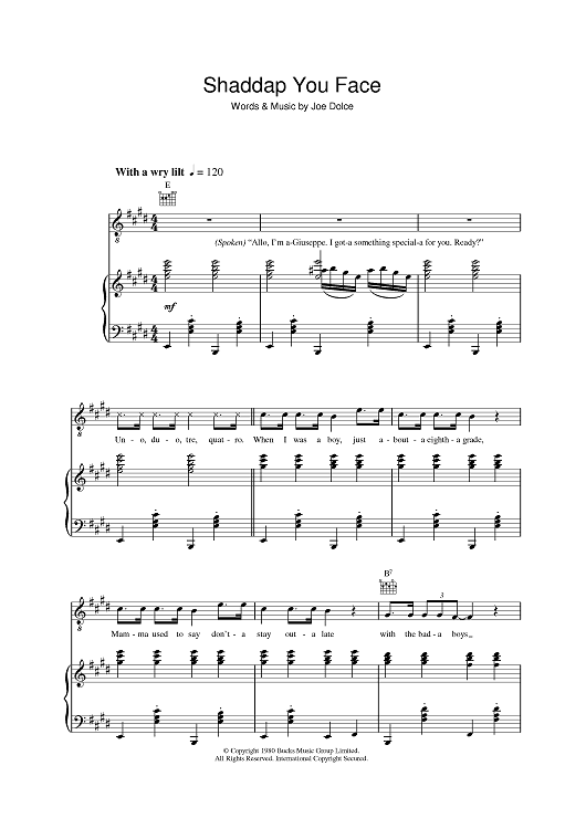 "Shaddap You Face" Sheet Music by Joe Dolce