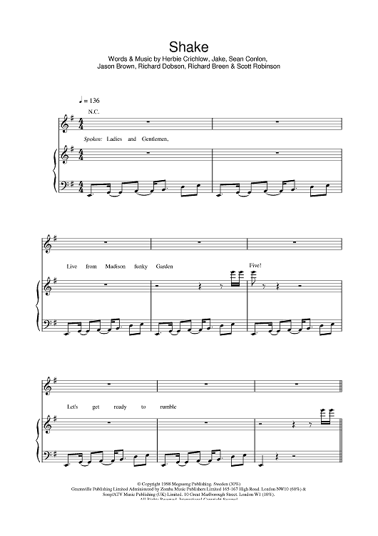Digital Sheet Music for Shake by Five scored for Piano/Vocal/Chords; id:376702