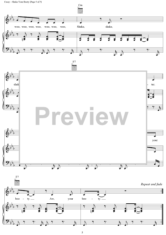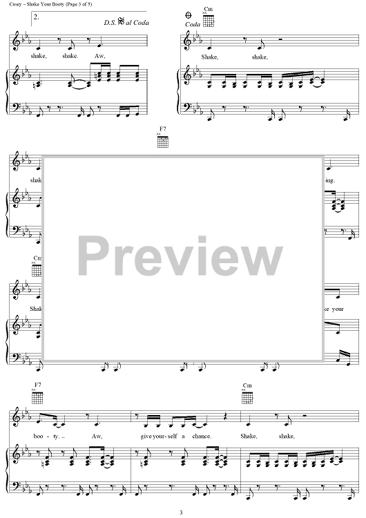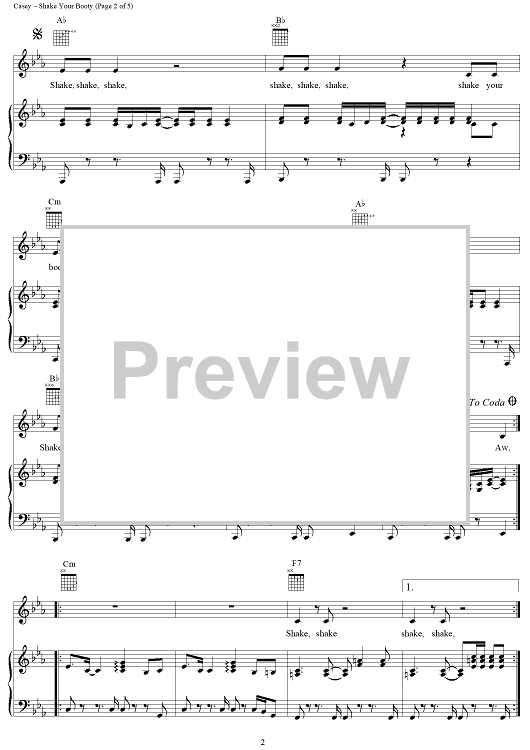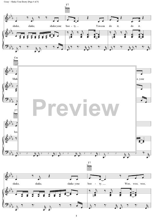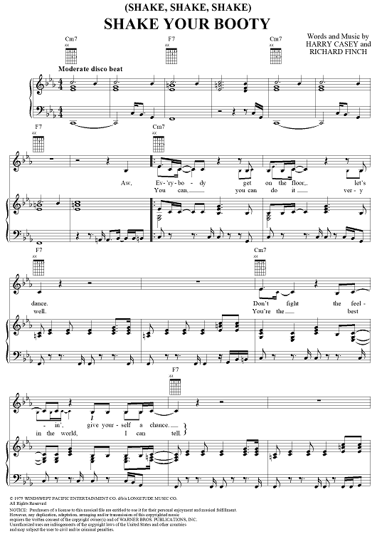 Digital Sheet Music for (Shake, Shake, Shake) Shake Your Booty by KC, Richard Finch, KC and the Sunshine Band scored for Piano/Vocal/Chords; id:119999