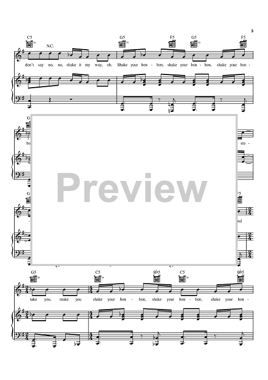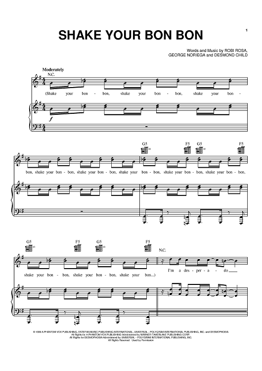 Digital Sheet Music for Shake Your Bon Bon by Desmond Child, Robi Rosa, Ricky Martin, George Noriega, William Hung scored for Piano/Vocal/Chords; id:374890