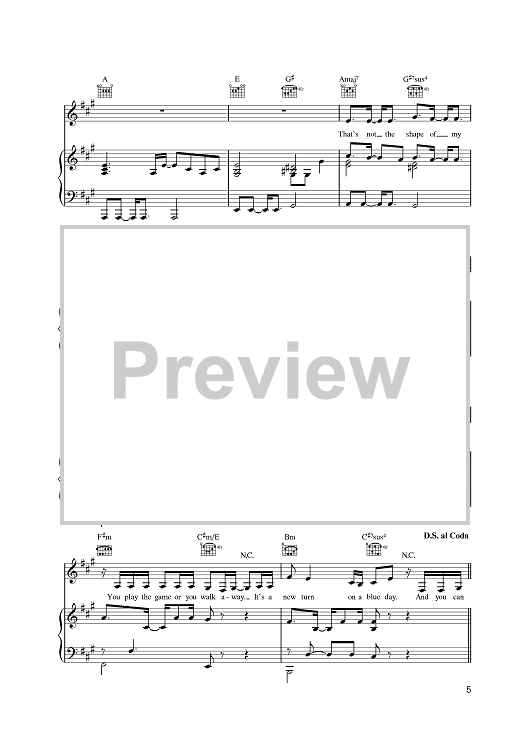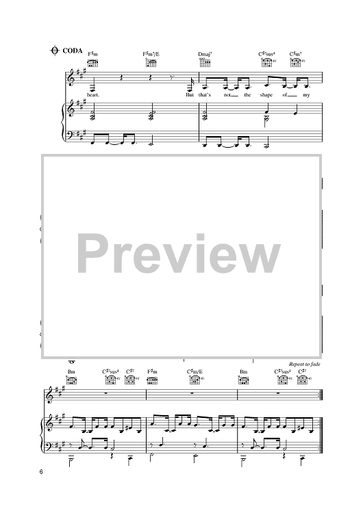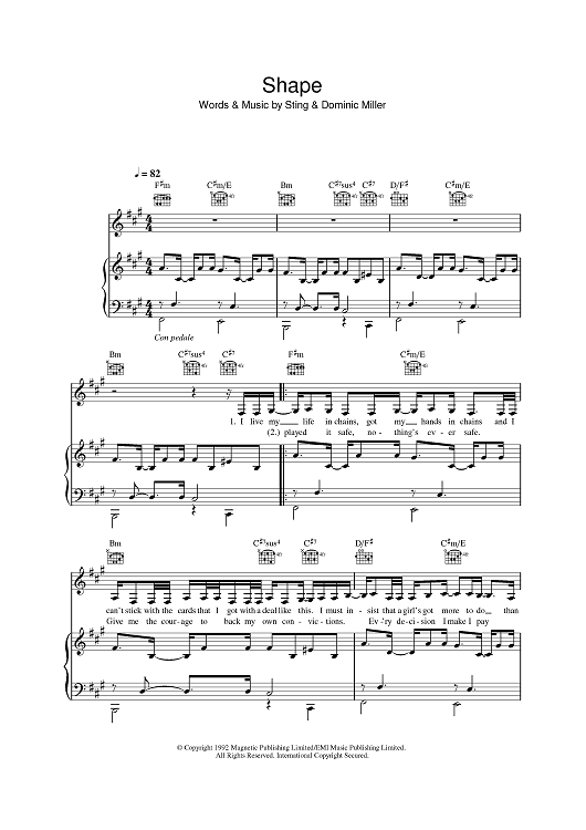 Digital Sheet Music for Shape by Sting, Sugababes, Dominic Miller scored for Piano/Vocal/Chords; id:385504