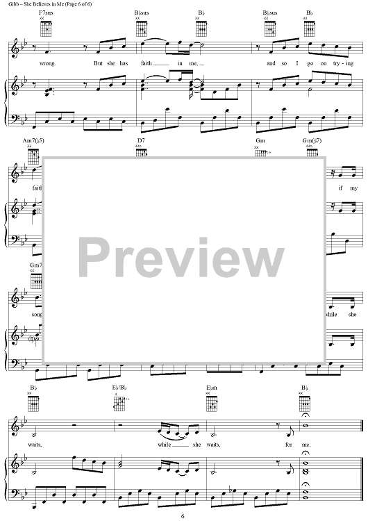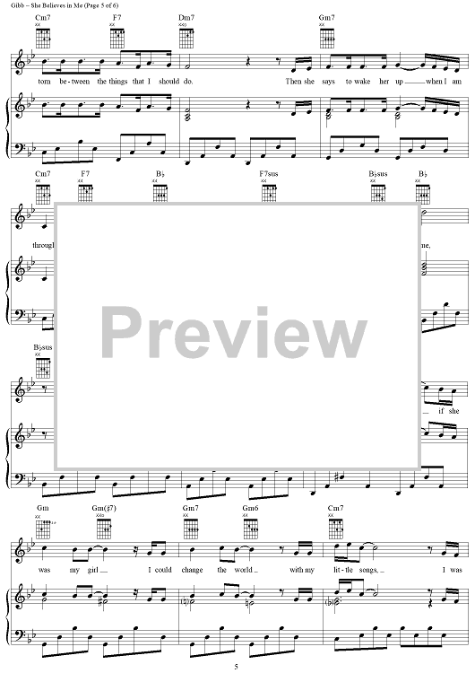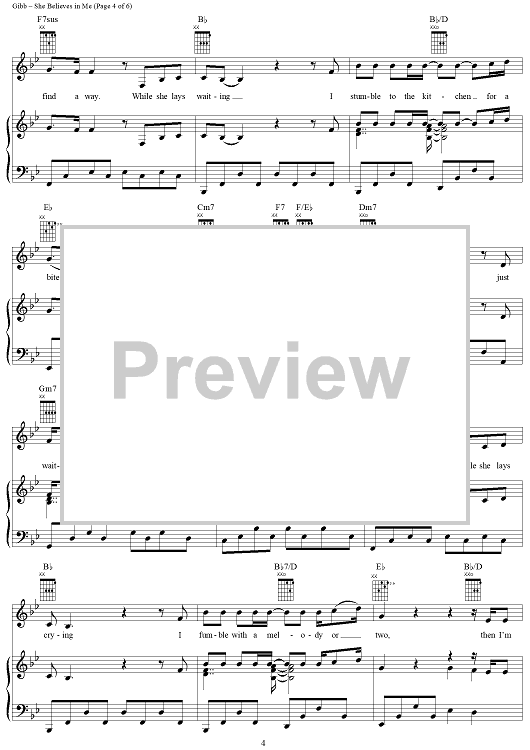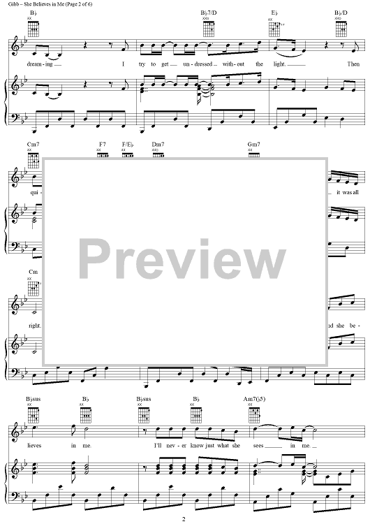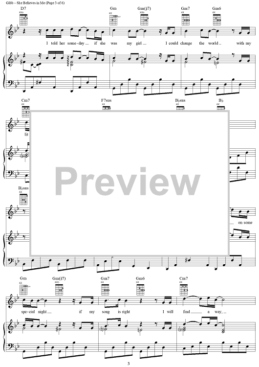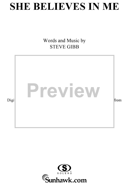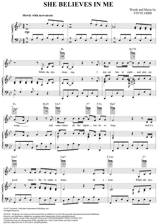 Digital Sheet Music for She Believes in Me by Kenny Rogers, Steve Gibb scored for Piano/Vocal/Chords; id:289277