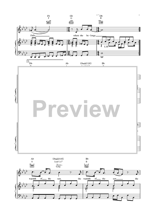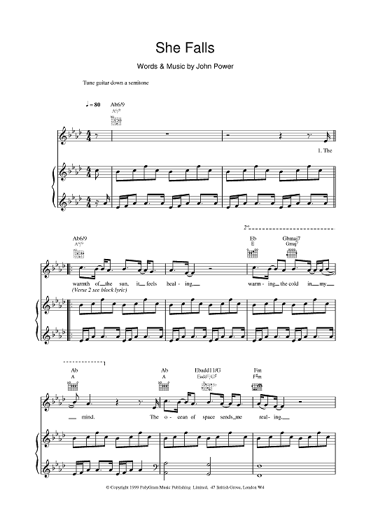 Digital Sheet Music for She Falls by Cast scored for Piano/Vocal/Chords; id:376867