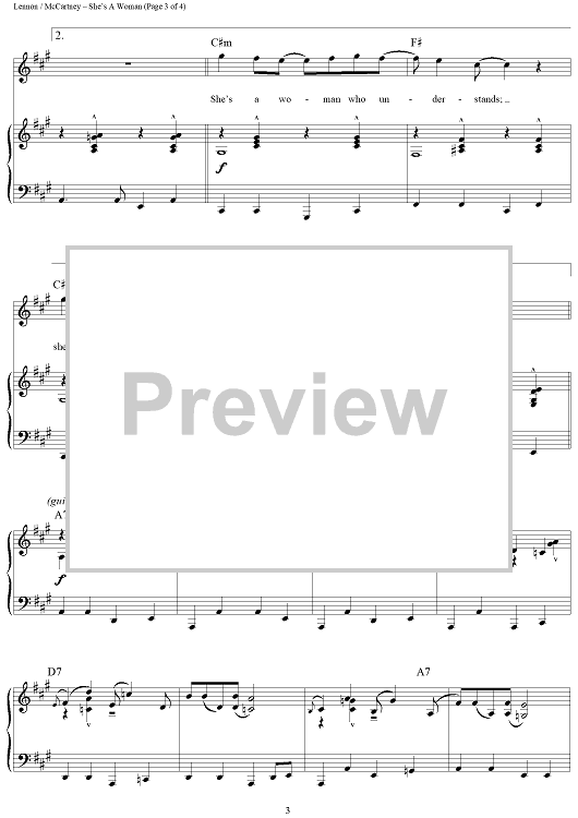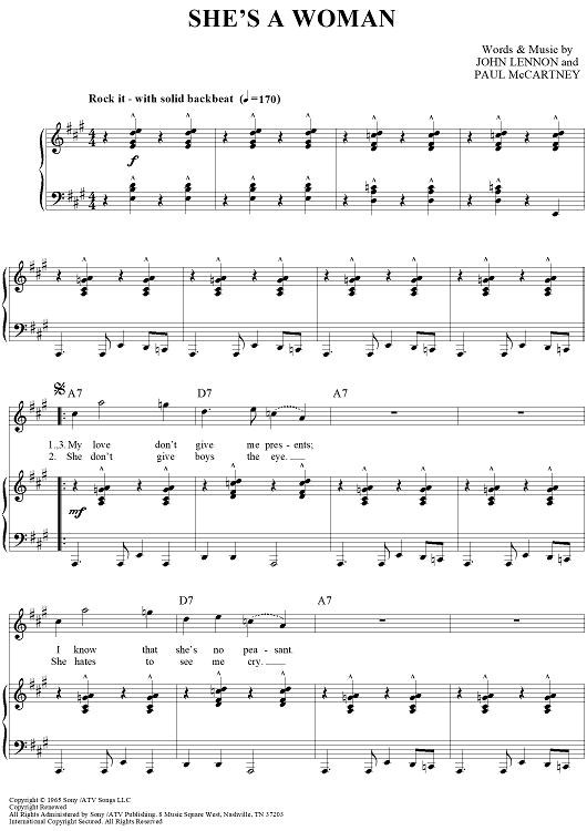 Digital Sheet Music for She's a Woman by Paul McCartney, The Beatles, John Lennon scored for Piano/Vocal/Chords; id:364797