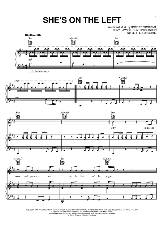 Digital Sheet Music for She's On The Left by Jeffrey Osborne, Clinton Blanson, Robert Brookins, Tony Haynes, Jeffrey Osbourne scored for Piano/Vocal/Chords; id:384466