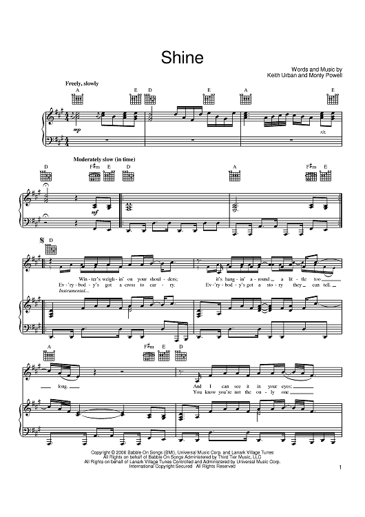 Digital Sheet Music for Shine by Monty Powell, Keith Urban scored for Piano/Vocal/Chords; id:399119