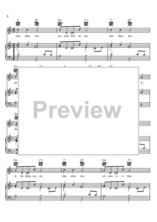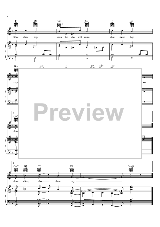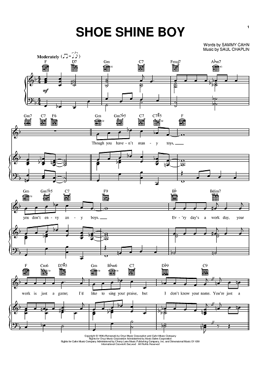 Digital Sheet Music for Shoe Shine Boy by Louis Armstrong, Sammy Cahn, Duke Ellington, Lester Young, Saul Chaplin scored for Piano/Vocal/Chords; id:387394