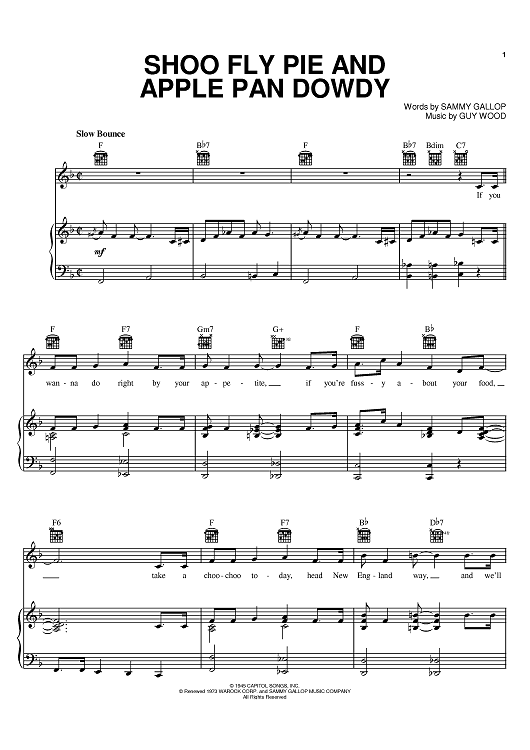 Digital Sheet Music for Shoo Fly Pie And Apple Pan Dowdy by Stan Kenton, Guy Wood, Sammy Gallop, Dinah Shore, June Christy scored for Piano/Vocal/Chords; id:381888