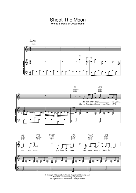 Digital Sheet Music for Shoot The Moon by Jesse Harris, Norah Jones scored for Piano/Vocal/Chords; id:382638