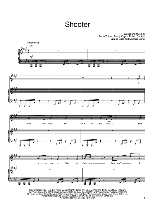 Digital Sheet Music for Shooter by James Gass, Dwayne Carter, Robert Daniels, Bobby Keyes, Robin Thicke scored for Piano/Vocal/Chords; id:401831