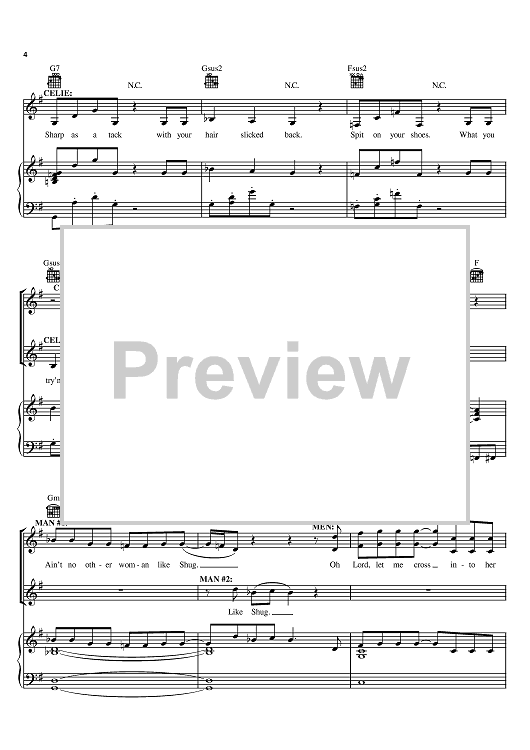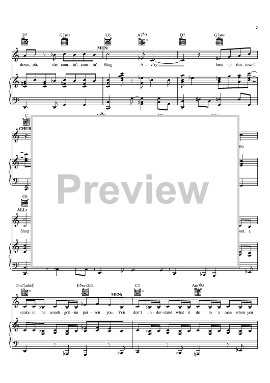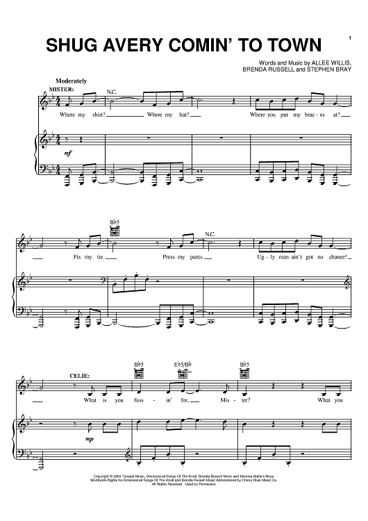 Digital Sheet Music for Shug Avery Comin' To Town by Brenda Russell, Stephen Bray, Allee Willis scored for Piano/Vocal/Chords; id:398471