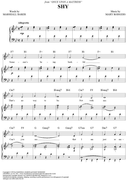 Digital Sheet Music for Shy by Mary Rodgers, Marshall Barer scored for Piano/Vocal/Chords; id:314314