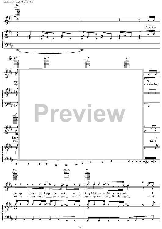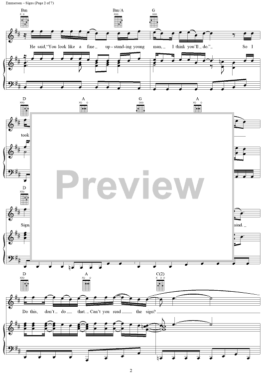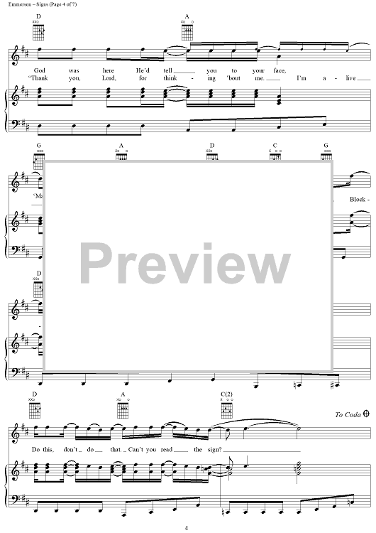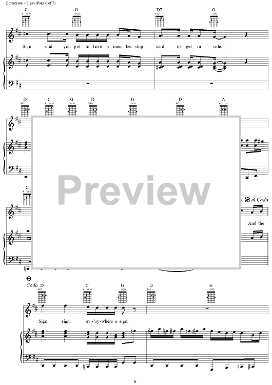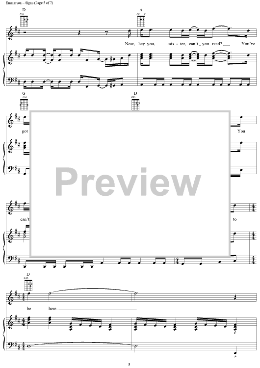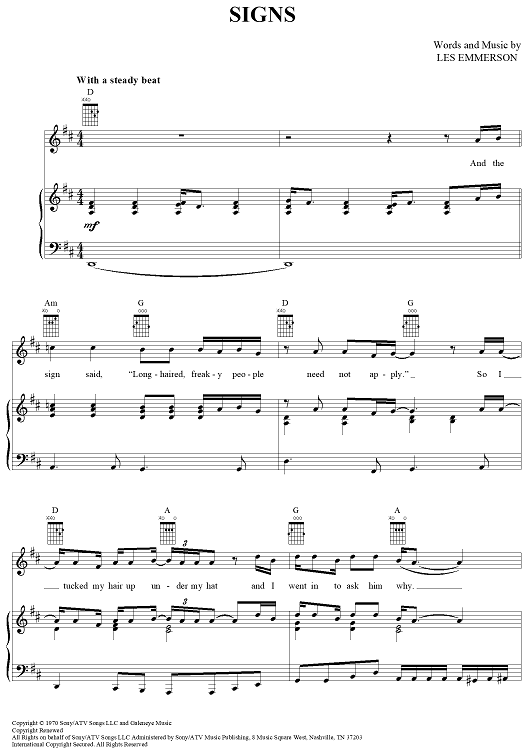Digital Sheet Music for Signs by Les Emmerson, Five Man Electrical Band, Tesla scored for Piano/Vocal/Chords; id:367463