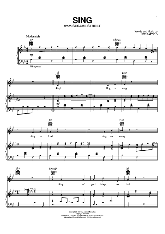 Digital Sheet Music for Sing by The Carpenters, Joe Raposo, The Muppets scored for Piano/Vocal/Chords; id:374793