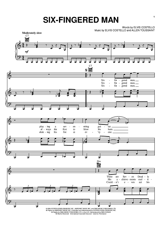 Digital Sheet Music for Six-Fingered Man by Elvis Costello, Allen Toussaint scored for Piano/Vocal/Chords; id:394728