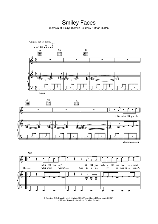Digital Sheet Music for Smiley Faces by Gnarls Barkley, Danger Mouse, CeeLo Green scored for Piano/Vocal/Chords; id:394268