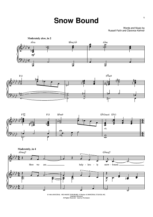 Digital Sheet Music for Snow Bound by Russell Faith, Clarence Way Kehner, Barbra Streisand scored for Piano/Vocal/Chords; id:374848