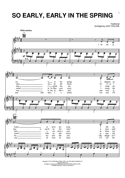 Digital Sheet Music for So Early, Early In The Spring by Judy Collins scored for Piano/Vocal/Chords; id:402639