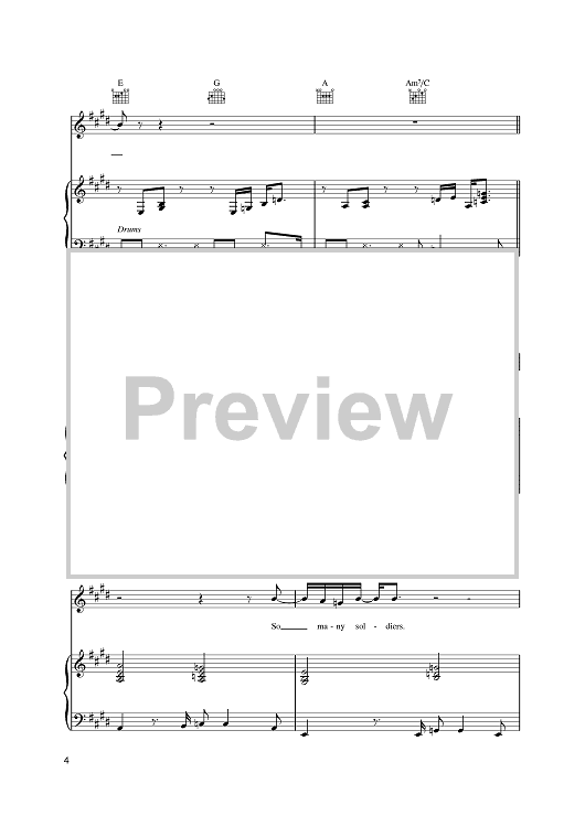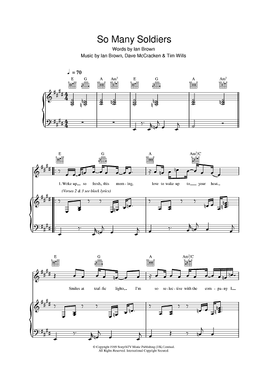 Digital Sheet Music for So Many Soldiers by Ian Brown, Dave McCracken, Tim Wills scored for Piano/Vocal/Chords; id:391165