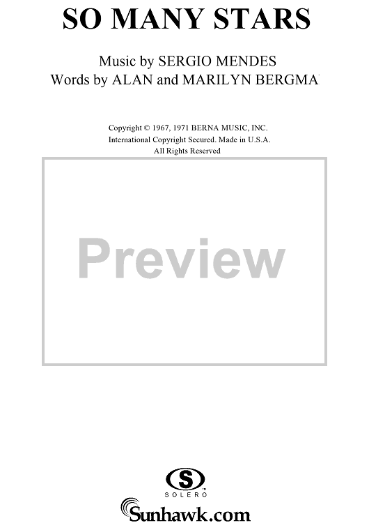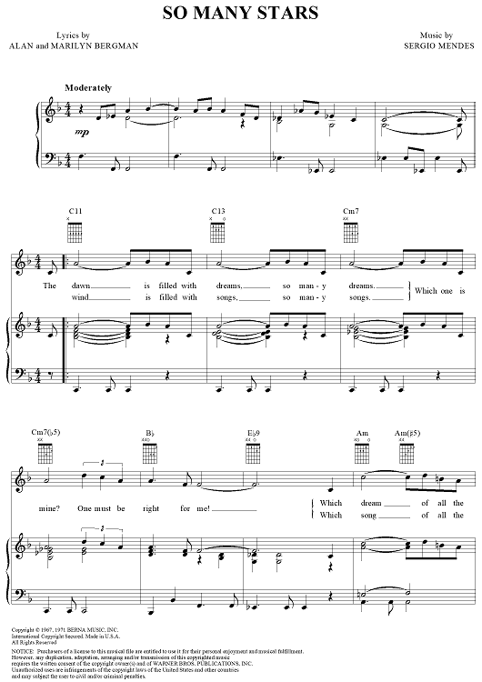 Digital Sheet Music for So Many Stars by Alan Bergman, Marilyn Bergman, Sergio Mendes scored for Piano/Vocal/Chords; id:117318