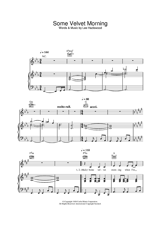 Digital Sheet Music for Some Velvet Morning by Nancy Sinatra, Lee Hazlewood scored for Piano/Vocal/Chords; id:387025