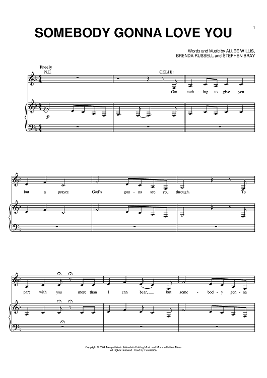 "Somebody Gonna Love You" Sheet Music by Brenda Russell