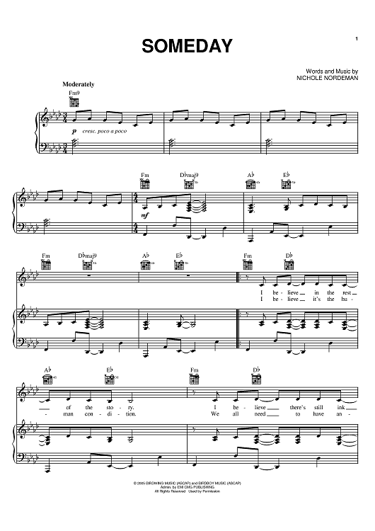 Digital Sheet Music for Someday by Nichole Nordeman scored for Piano/Vocal/Chords; id:384472