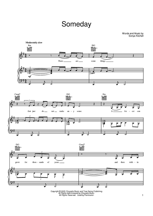Digital Sheet Music for Someday by Sonya Kitchell scored for Piano/Vocal/Chords; id:399356