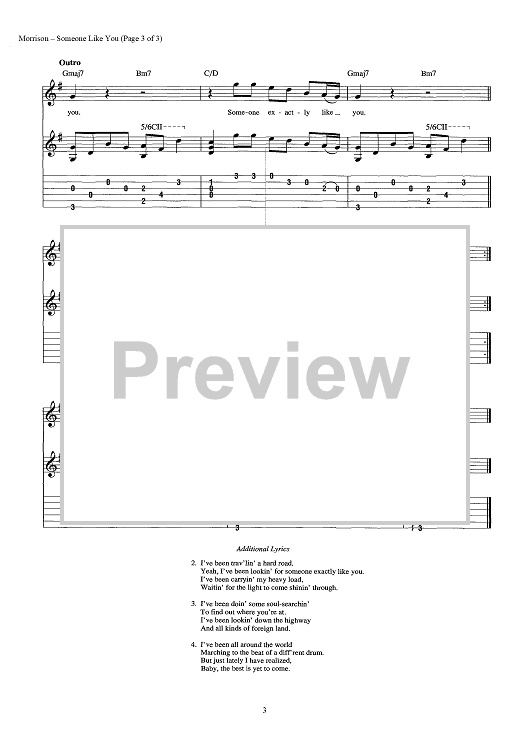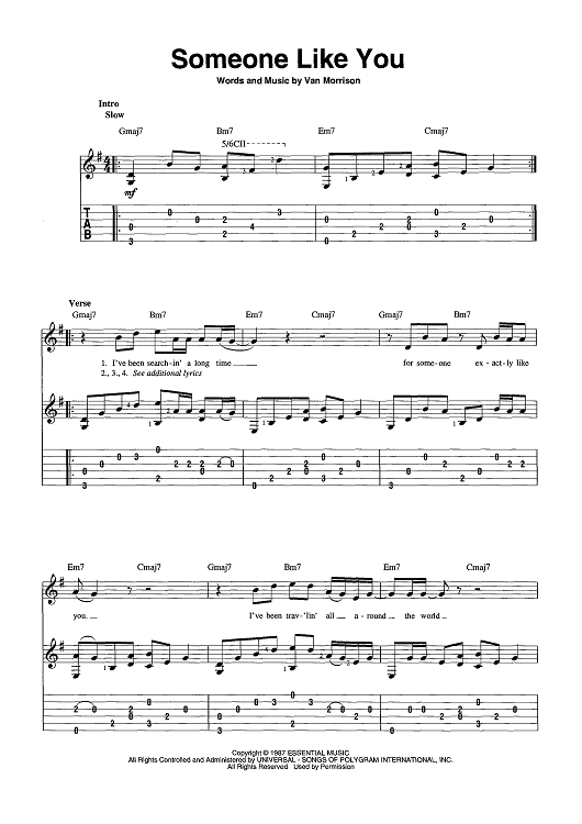Digital Sheet Music for Someone Like You by Van Morrison scored for Guitar Tab/Vocal/Chords; id:443645