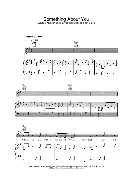 Digital Sheet Music for Something About You by Jon Green, Richard Lobb, Lucie Silvas scored for Piano/Vocal/Chords; id:397016