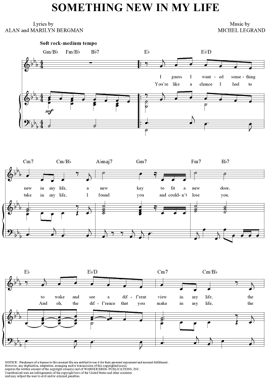 Digital Sheet Music for Something New in My Life by Michel LeGrand, Alan Bergman, Marilyn Bergman scored for Piano/Vocal/Chords; id:250774