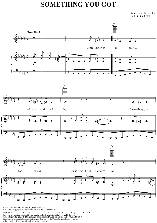 Digital Sheet Music for Something You Got by Chris Kenner, Moody Blues scored for Piano/Vocal/Chords; id:250147
