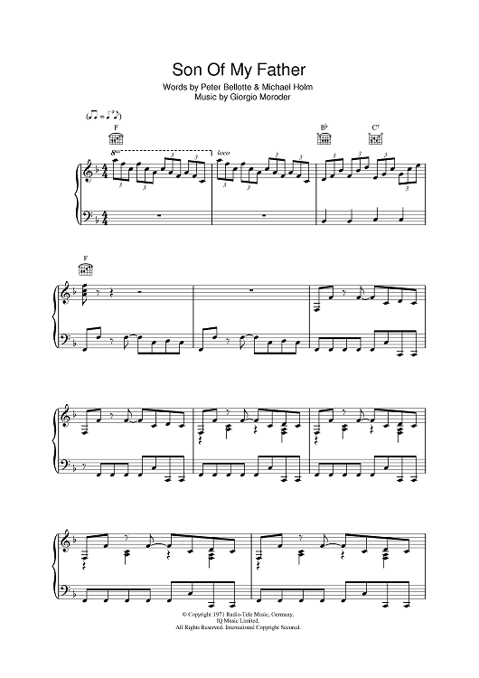 Digital Sheet Music for Son Of My Father by Giorgio Moroder, Pete Bellotte, Chicory Tip, Michael Holm scored for Piano/Vocal/Chords; id:392884