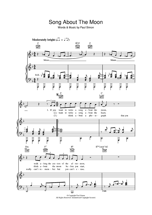 Digital Sheet Music for Song About The Moon by Paul Simon scored for Piano/Vocal/Chords; id:391045