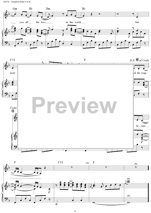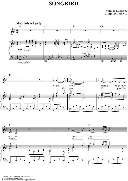 Digital Sheet Music for Songbird by Fleetwood Mac, Christine McVie scored for Piano/Vocal/Chords; id:453410