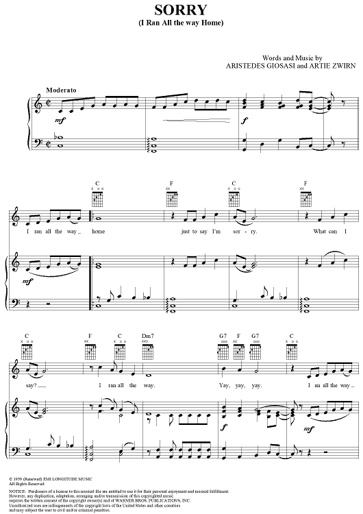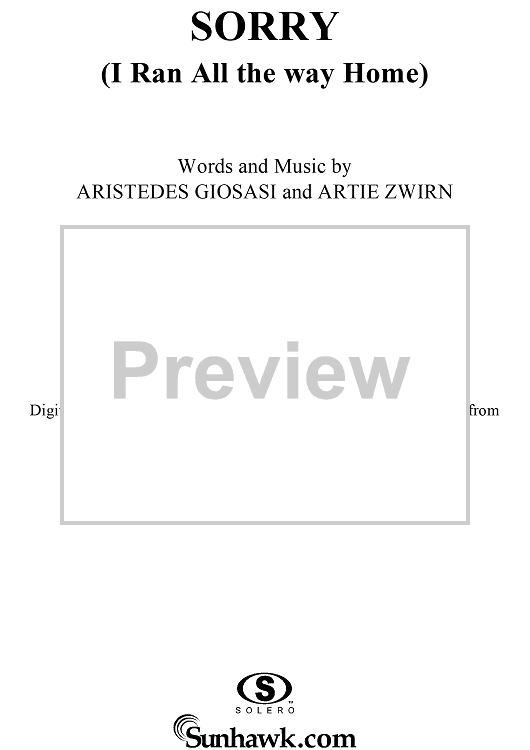 Digital Sheet Music for Sorry (I Ran All the Way Home) by Aristedes Giosasi, Artie Zwirn, Impalas scored for Piano/Vocal/Chords; id:286713