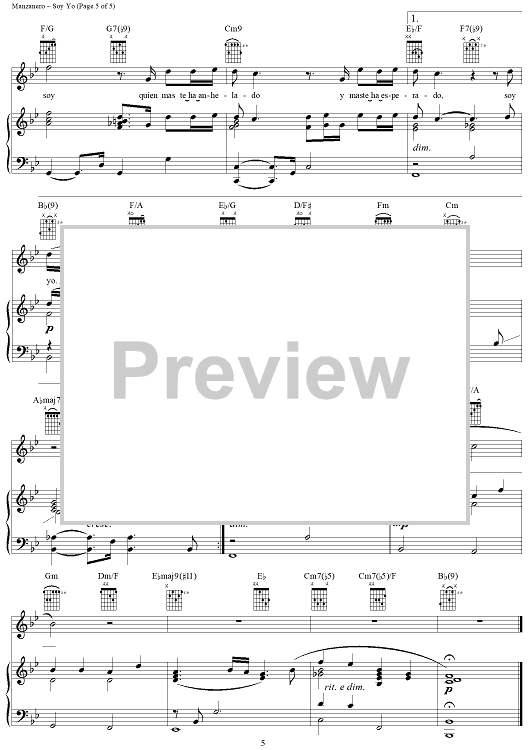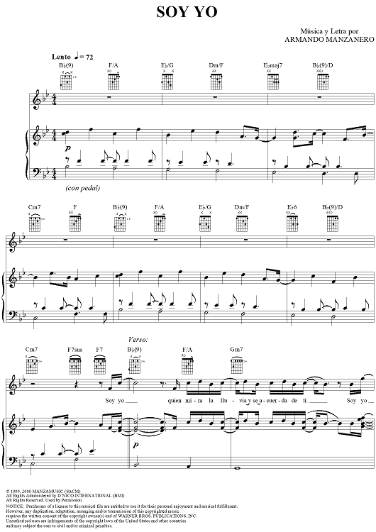 Digital Sheet Music for Soy Yo by Luis Miguel, Armando Manzanero scored for Piano/Vocal/Chords; id:234039
