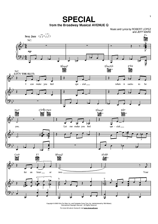 Digital Sheet Music for Special by Robert Lopez, Jeff Marx scored for Piano/Vocal/Chords; id:374800