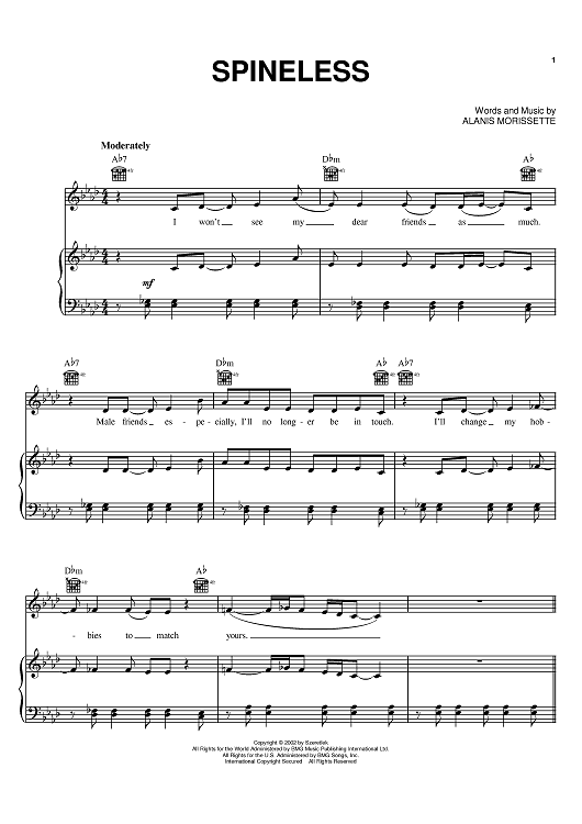 Digital Sheet Music for Spineless by Alanis Morissette scored for Piano/Vocal/Chords; id:380360