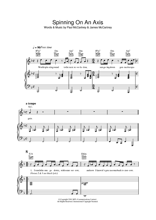 Digital Sheet Music for Spinning On An Axis by Paul McCartney, James McCartney scored for Piano/Vocal/Chords; id:390343