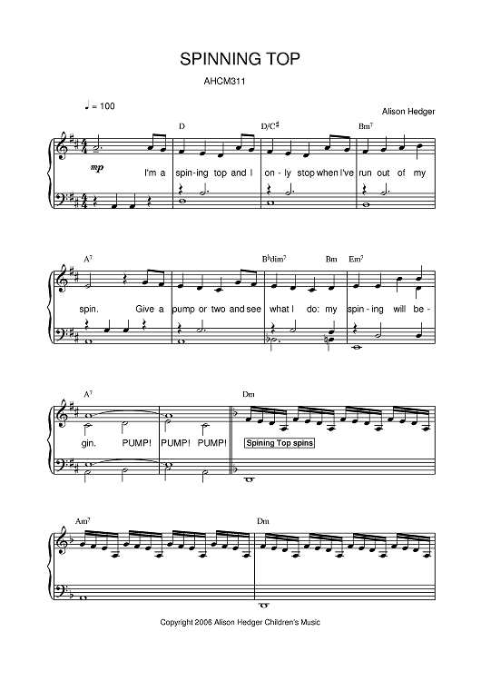Digital Sheet Music for Spinning Top by Alison Hedger scored for Piano/Vocal/Chords; id:391589