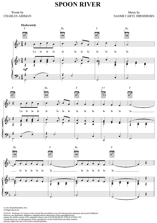 Digital Sheet Music for Spoon River by Charles Aidman, Naomi Caryl Hirshhorn scored for Piano/Vocal/Chords; id:355717