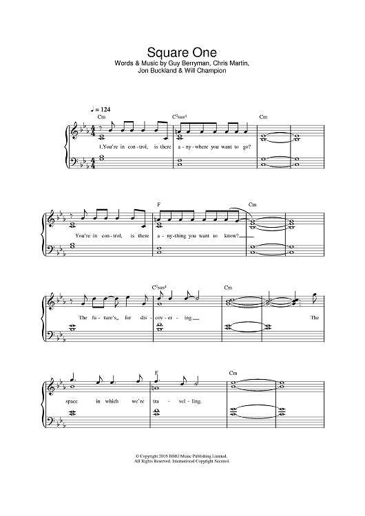 Digital Sheet Music for Square One by Chris Martin, Coldplay, Jonny Buckland, Guy Berryman scored for Piano/Vocal/Chords; id:385876