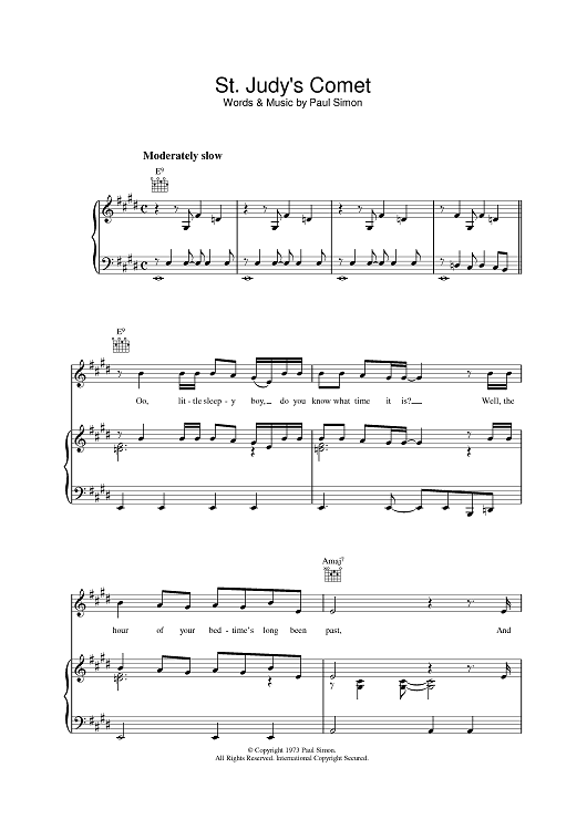 Digital Sheet Music for St. Judy's Comet by Paul Simon scored for Piano/Vocal/Chords; id:391400
